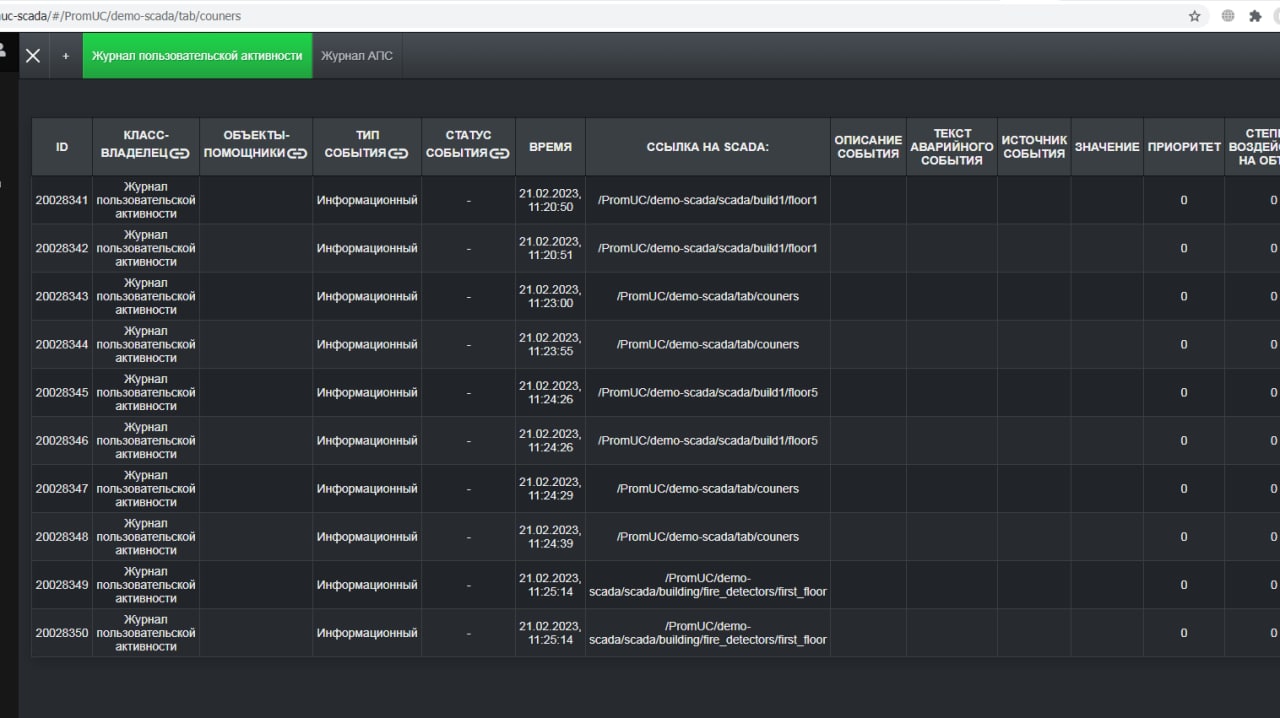 Система ведёт журнал событий безопасности, в который попадают следующие события: